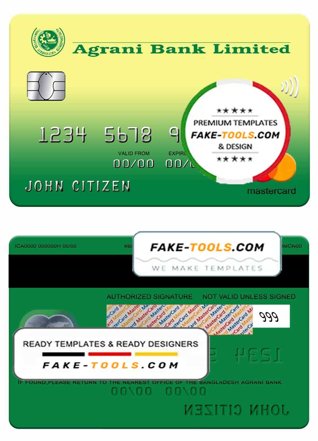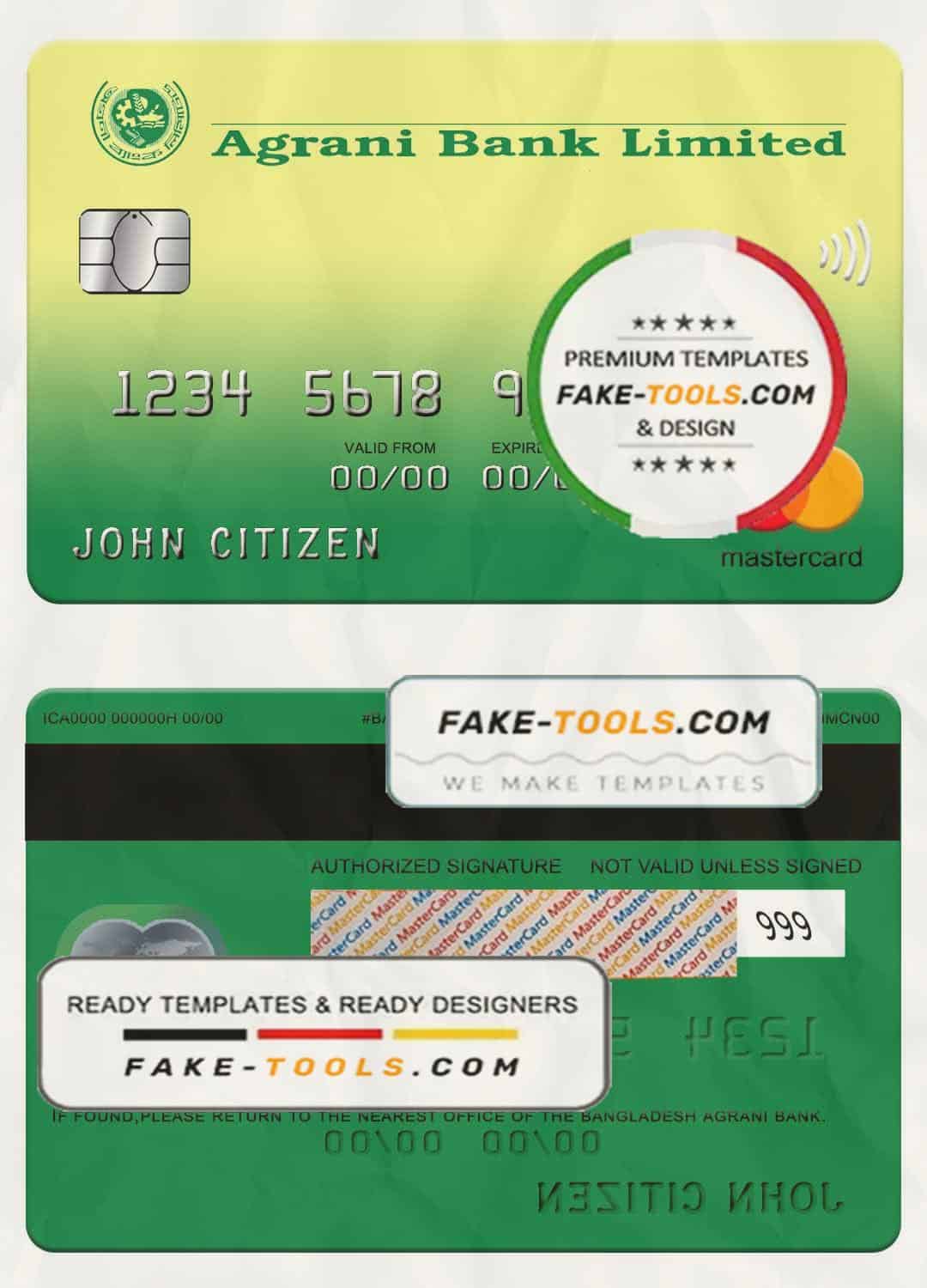 Bangladesh Agrani bank mastercard template in PSD format, fully editable