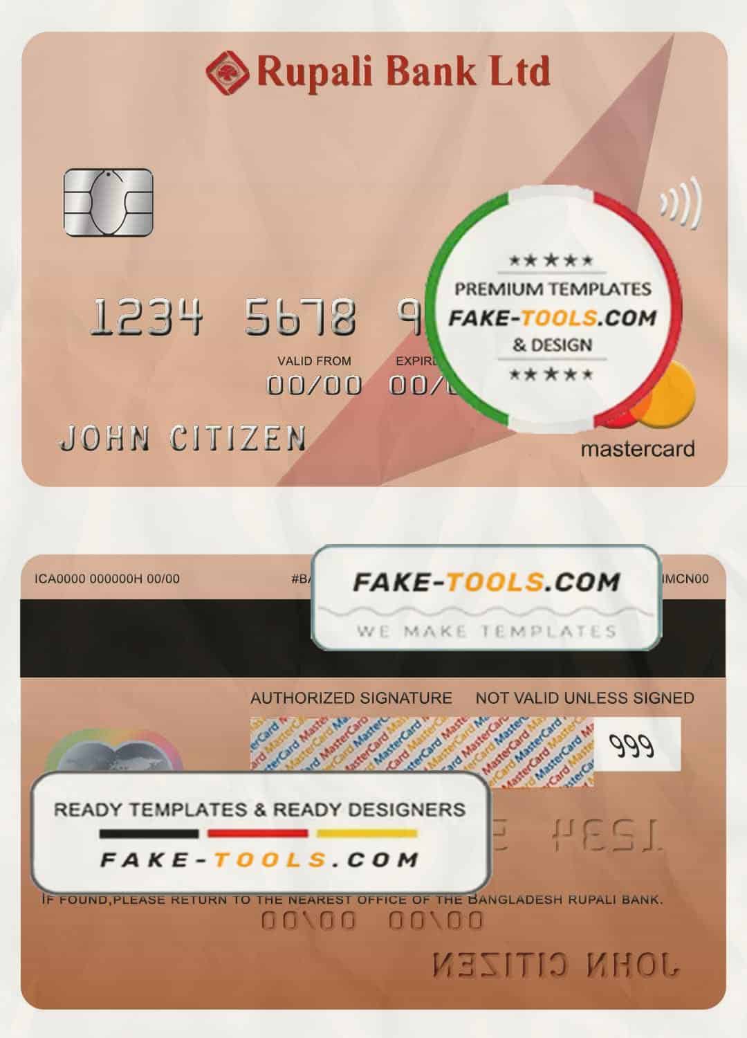 Bangladesh Rupali bank mastercard template in PSD format, fully editable
