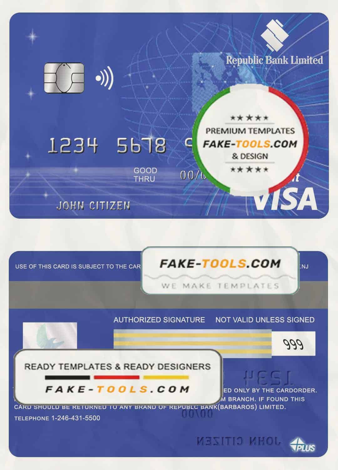 Barbados Republic Bank visa card template in PSD format, fully editable