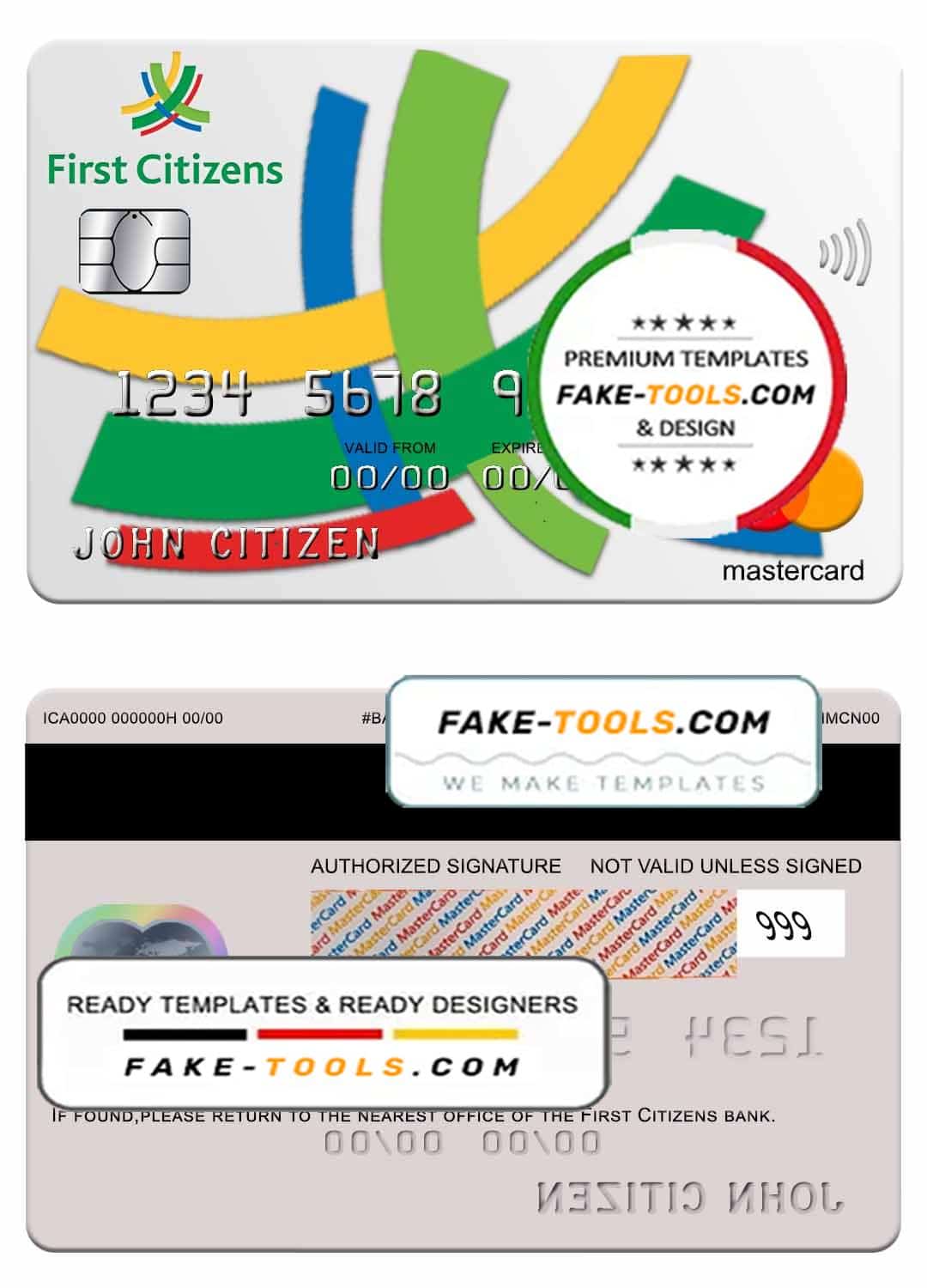 Barbados first Citizens bank mastercard template in PSD format, fully editable