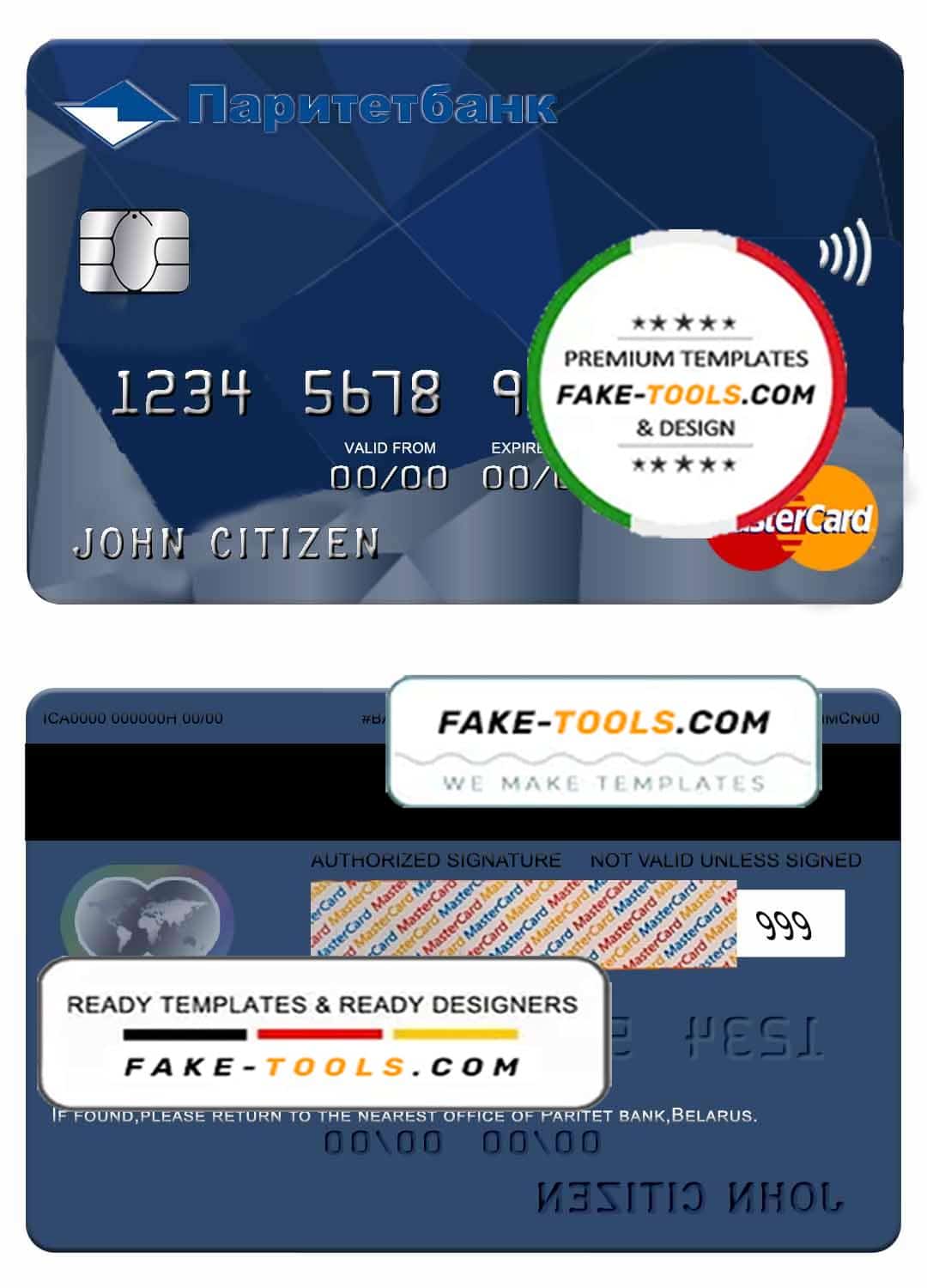 Belarus Paritet bank mastercard template in PSD format, fully editable