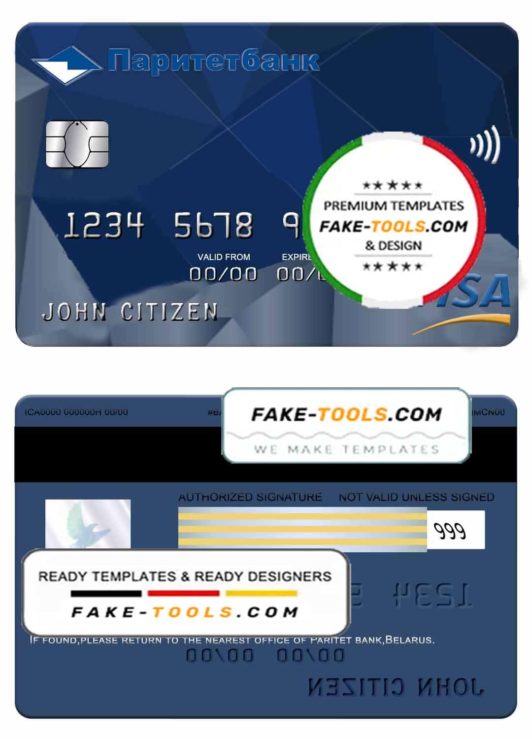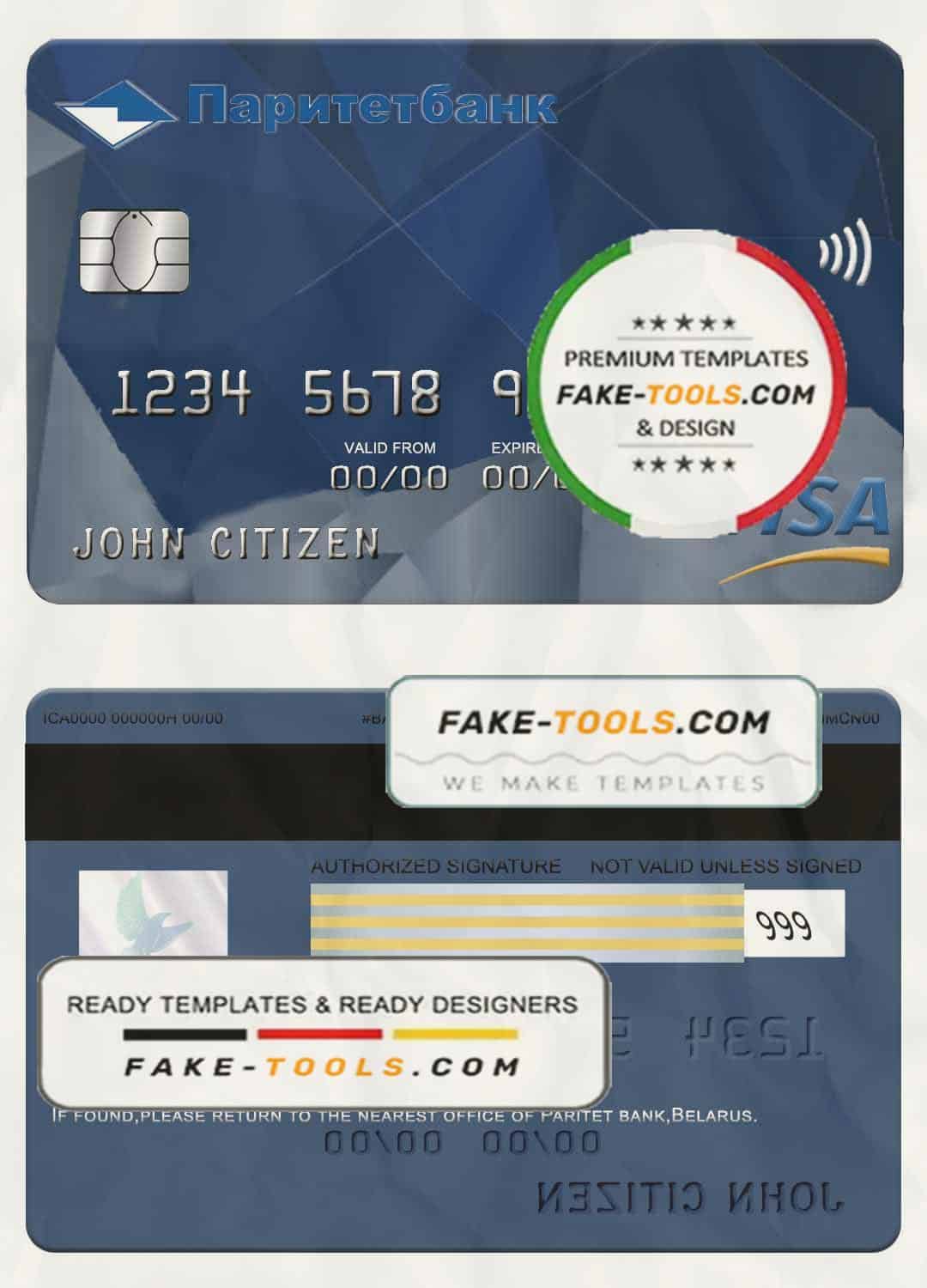 Belarus Paritet bank visa card template in PSD format, fully editable