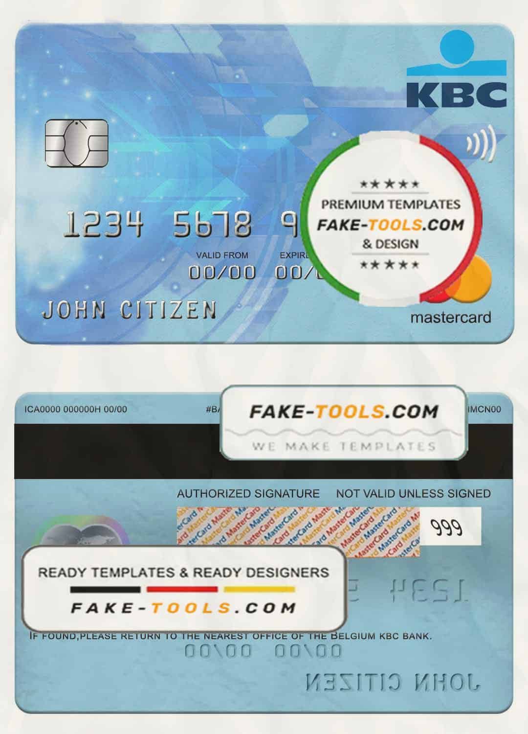 Belgium KBC bank mastercard template in PSD format, fully editable