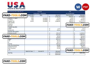 USA Waste & Recycling recycling company pay stub Word and PDF template