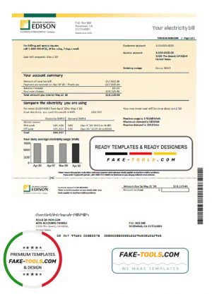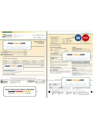 USA Southern California EDISON utility bill, Word and PDF template, 8 pages
