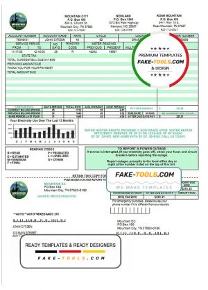 USA Tennessee Mountain Electric Cooperative, Inc. (MEC) utility bill template in Word and PDF format