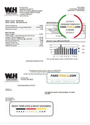 USA Minnesota Wright-Hennepin utility bill template in Word and PDF format