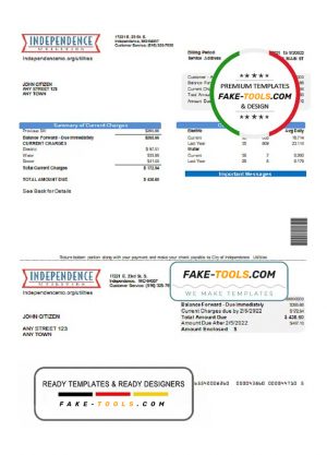 USA Missouri Independence Utilities utility bill template in Word and PDF format