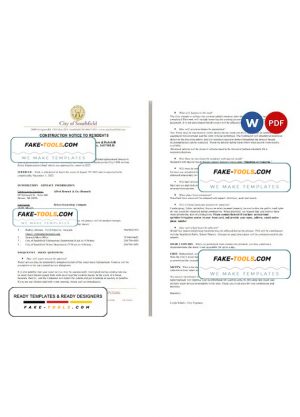 USA Michigan City of Southfield utility water and construction shut off notice, Word and PDF template, 3 pages