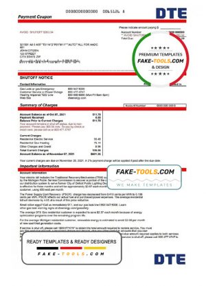 USA Michigan DTE Energy utility bill template in Word and PDF format