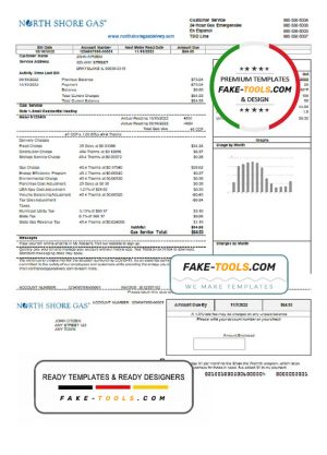 USA Illinois North Shore Gas utility bill template in Word and PDF format