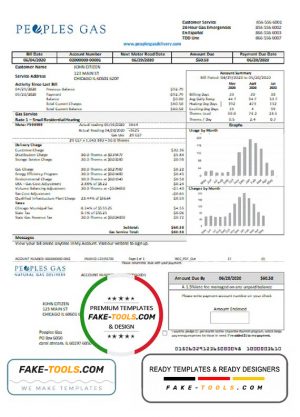 USA Illinois Peoples Gas utility bill template in Word and PDF format