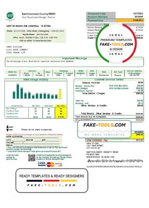 USA Indiana Bartholomew County REMC utility bill template in Word and PDF format