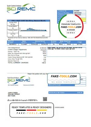 USA Indiana SCI REMC utility bill template in Word and PDF format