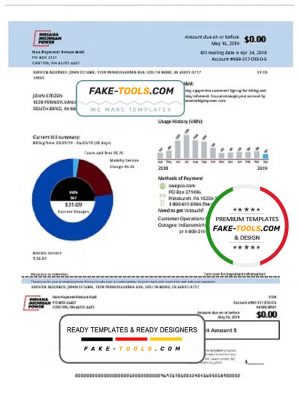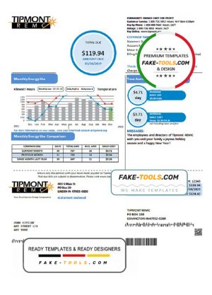 USA Indiana Tipmont utility bill template in Word and PDF format