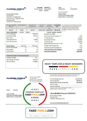proof of address/utility bill TemplateUSA Florida Public Utilities utility bill template in Word and PDF format- High Quality template