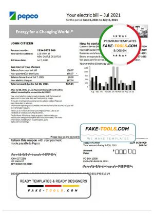 USA Washington Gas (WGL) utility bill template in Word and PDF format