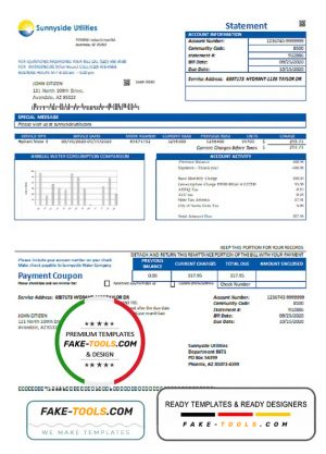 USA Wawatosa Water Utility utility bill template in Word and PDF format
