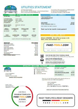 proof of address/utility bill TemplateUSA Florida City of Edgewater utility bill template in Word and PDF format- High Quality template