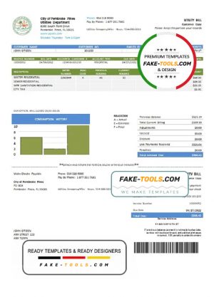 proof of address/utility bill TemplateUSA Florida City of Pembroke Pines Utilities Department utility bill template in Word and PDF format- High Quality template