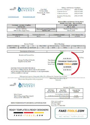 proof of address/utility bill TemplateUSA Florida Pensacola Energy utility bill template in Word and PDF format- High Quality template