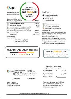 proof of address/utility bill TemplateUSA Arizona APS electricity proof of address utility bill template in Word and PDF format- High Quality template