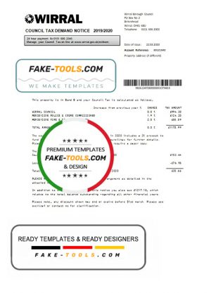 proof of address/utility bill TemplateUnited Kingdom Wirral council tax bill template in Word and PDF format- High Quality template