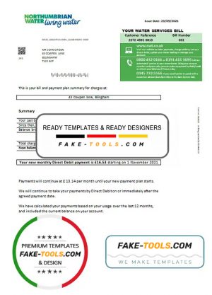 United Kingdom Northumbrian Water utility bill template in Word and PDF format, version 2
