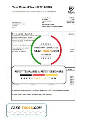 United Kingdom Oldham council tax bill template in Word and PDF format