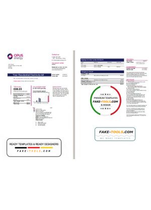 United Kingdom Opus Energy electricity utility bill template in Word and PDF format (2 pages)