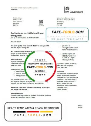 United Kingdom HM Government Warm Home Energy utility bill template in Word and PDF format