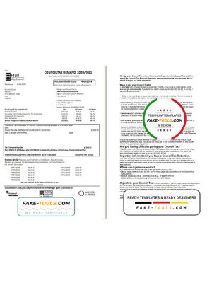 United Kingdom Hull City Council utility bill template in Word and PDF format, 2 pages