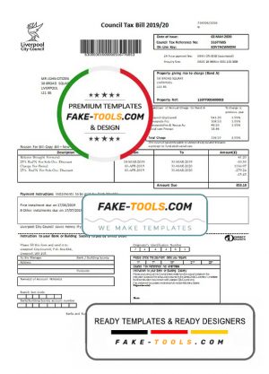 United Kingdom Liverpool City Council tax bill template in Word and PDF format