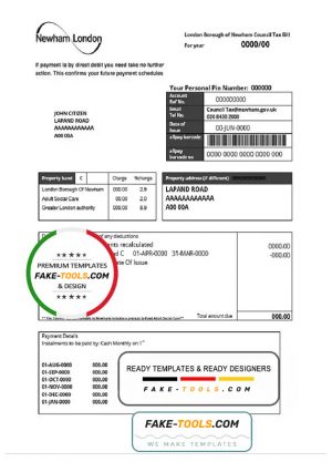 United Kingdom London of Borough of Newham council tax bill template in Word and PDF format