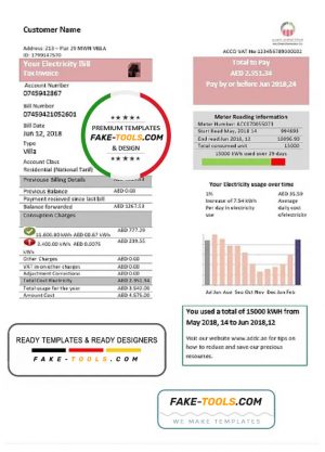 United Arab Emirates Abu Dhabi Distribution electricity utility bill template in Word and PDF format