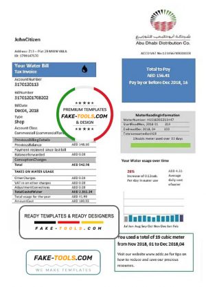 United Arab Emirates Abu Dhabi Distribution water utility bill template in Word and PDF format