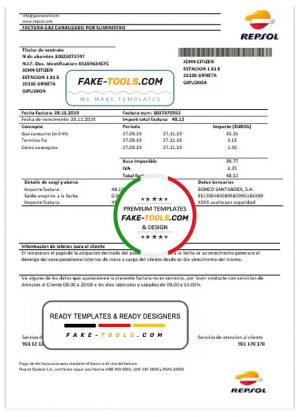 Spain Repsol gas utility bill template in Word and PDF format