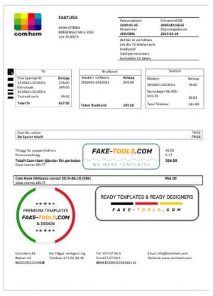 Sweden Com Hem utility bill template in Word and PDF format