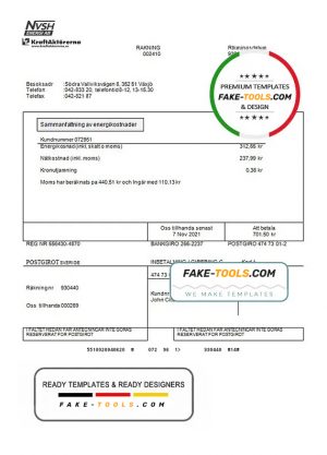 Sweden NVSH Energi utility bill template in Word and PDF format