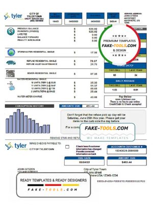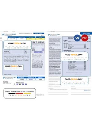 USA Time Warner Cabel utility bill, Word and PDF template, 3 pages