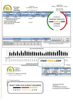 USA Tri-County Electric Cooperative utility bill template in Word and PDF format