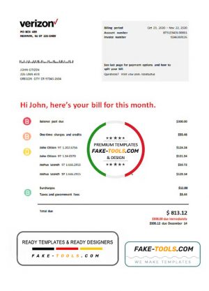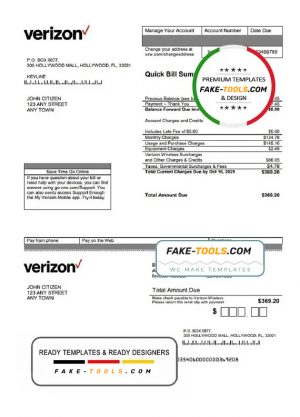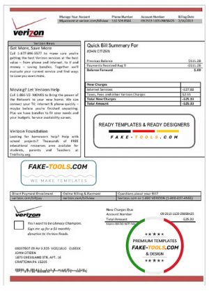 USA Verizon utility bill template in Word format, fully editable, version 2
