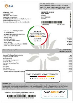 Romania Enel electricity proof of address utility bill template in Word and PDF format (.doc and .pdf)