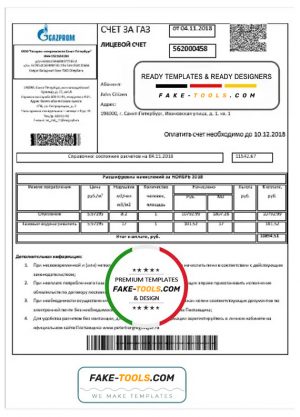 Russia Gazprom utility bill template in Word and PDF format, fully editable