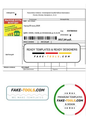 Russia Izveshenie utility bill template in Word and PDF format, fully editable