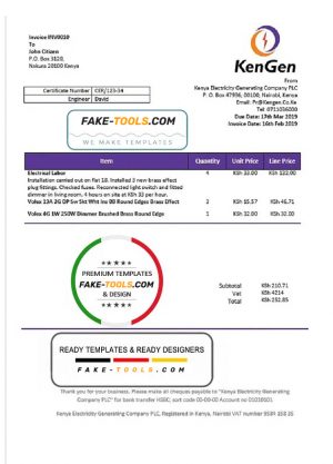 Kenya KenGen Electricity Generating Company utility bill template in Word and PDF format
