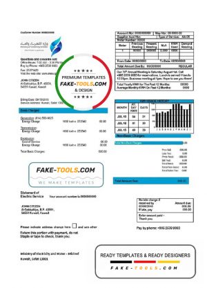 Kuwait Ministry of Electricity and Water utility bill template in Word and PDF format