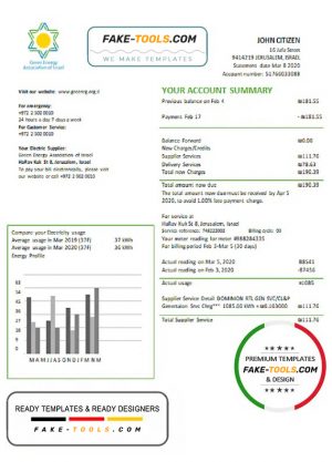 Israel Green Energy Association of Israel utility bill template in Word and PDF format (doc)