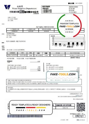 Hong Kong Water Supplies Department utility bill template in Word and PDF format