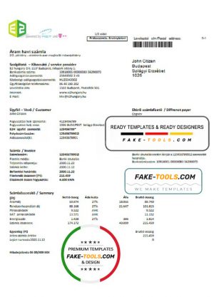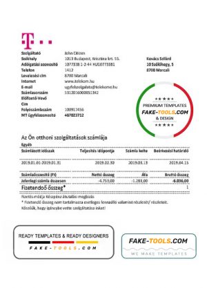 Hungary Magyartel utility bill template in Word and PDF format, fully editable